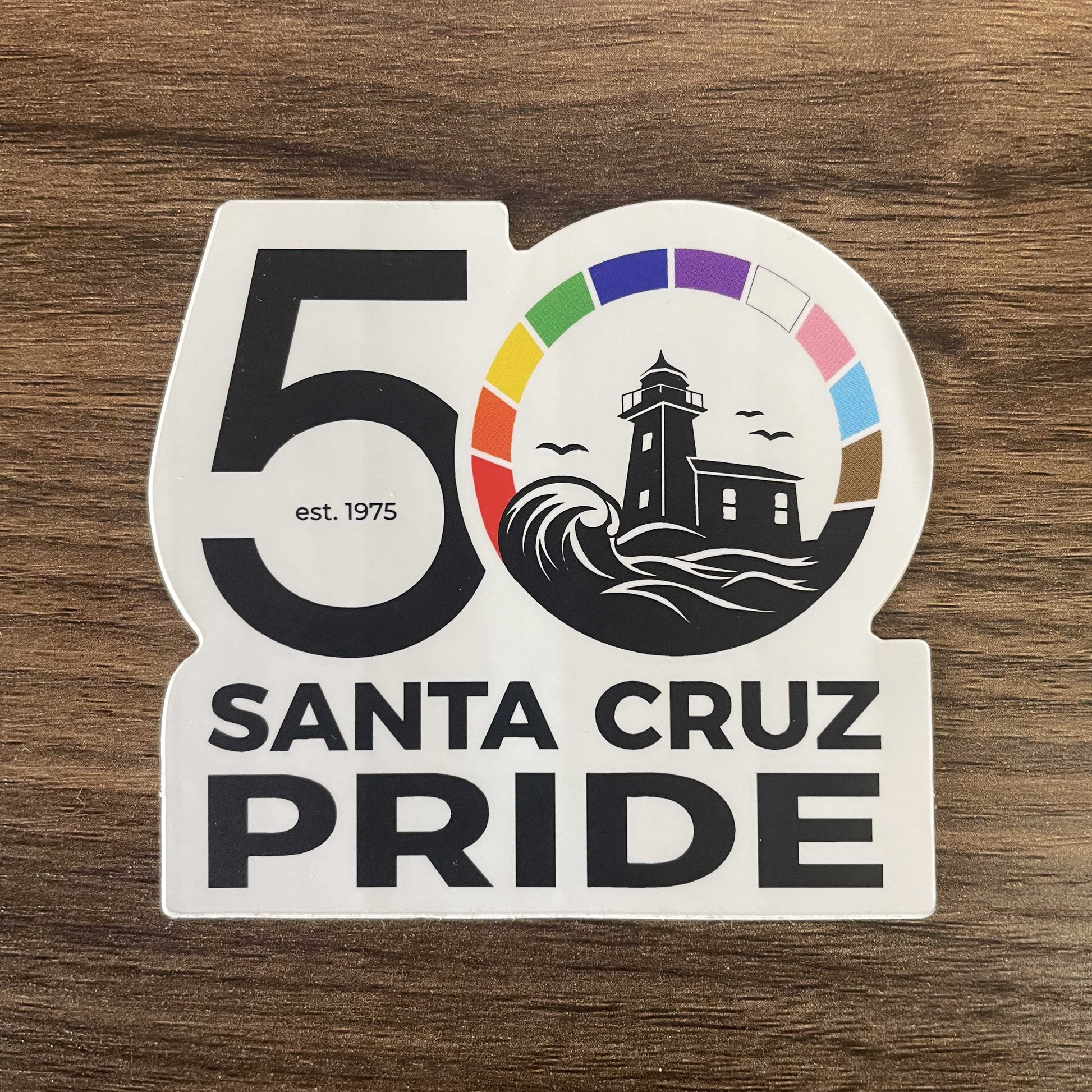 Celebrate five decades of love, resilience, and visibility with this custom die cut sticker, featuring the official Santa Cruz Pride 50th Anniversary logo. Bold, vibrant, and built to last, it’s the perfect way to rep Pride wherever you go — from your laptop to your water bottle and everywhere in between.