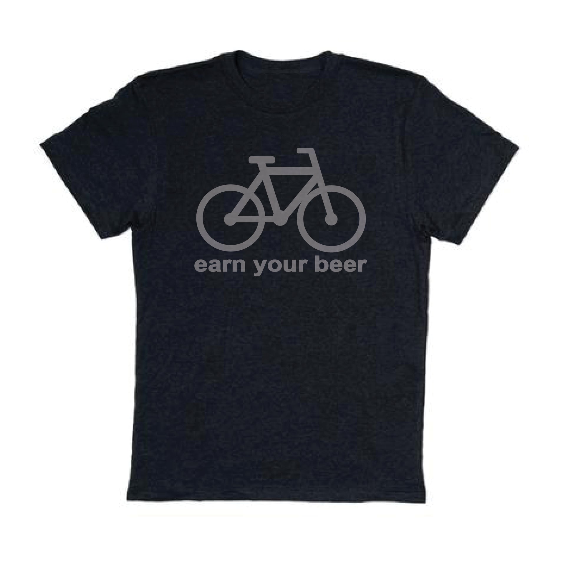 The legendary Earn Your Beer Bike shirt. This shirt is printed on 100% recycled materials.