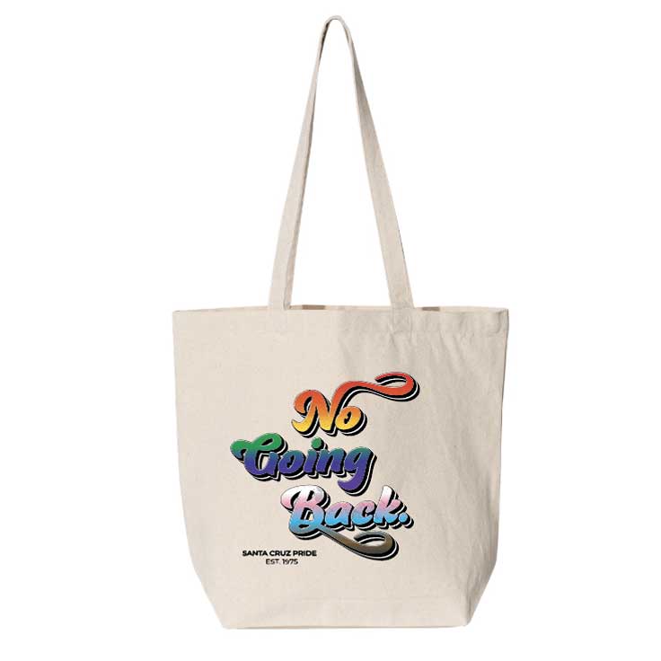 Carry your pride wherever you go with this durable, eco-conscious tote bag featuring two exclusive Santa Cruz Pride designs — one on each side.