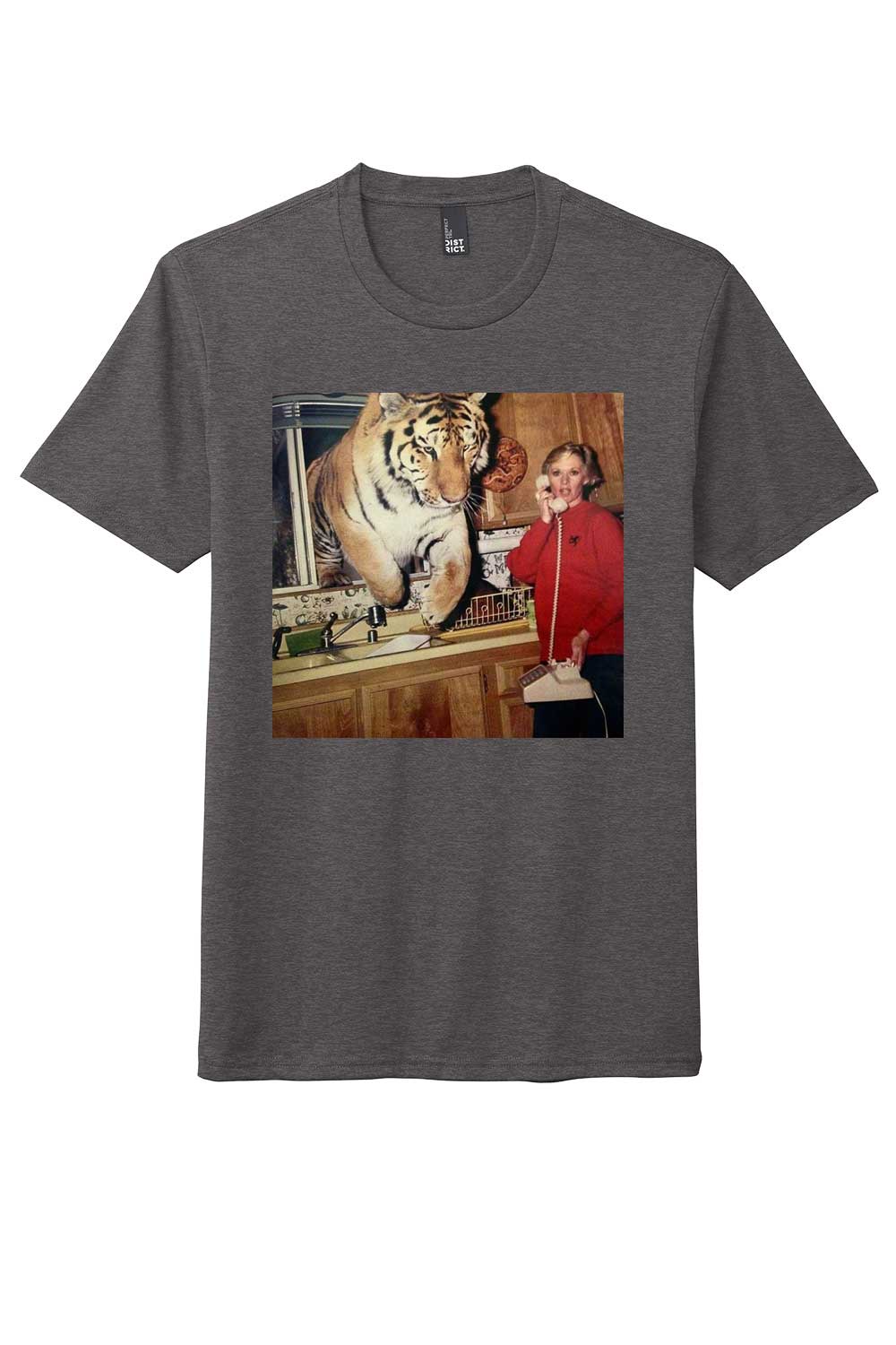 Celebrate an unforgettable moment of wild history with this T-shirt featuring a stunning image of actress Tippi Hedren as a tiger leaps boldly through her kitchen window at the Shambala Preserve. This iconic photo captures the unique blend of Hollywood glamor and untamed wilderness, perfectly showcasing Tippi’s fearless dedication to wildlife conservation.